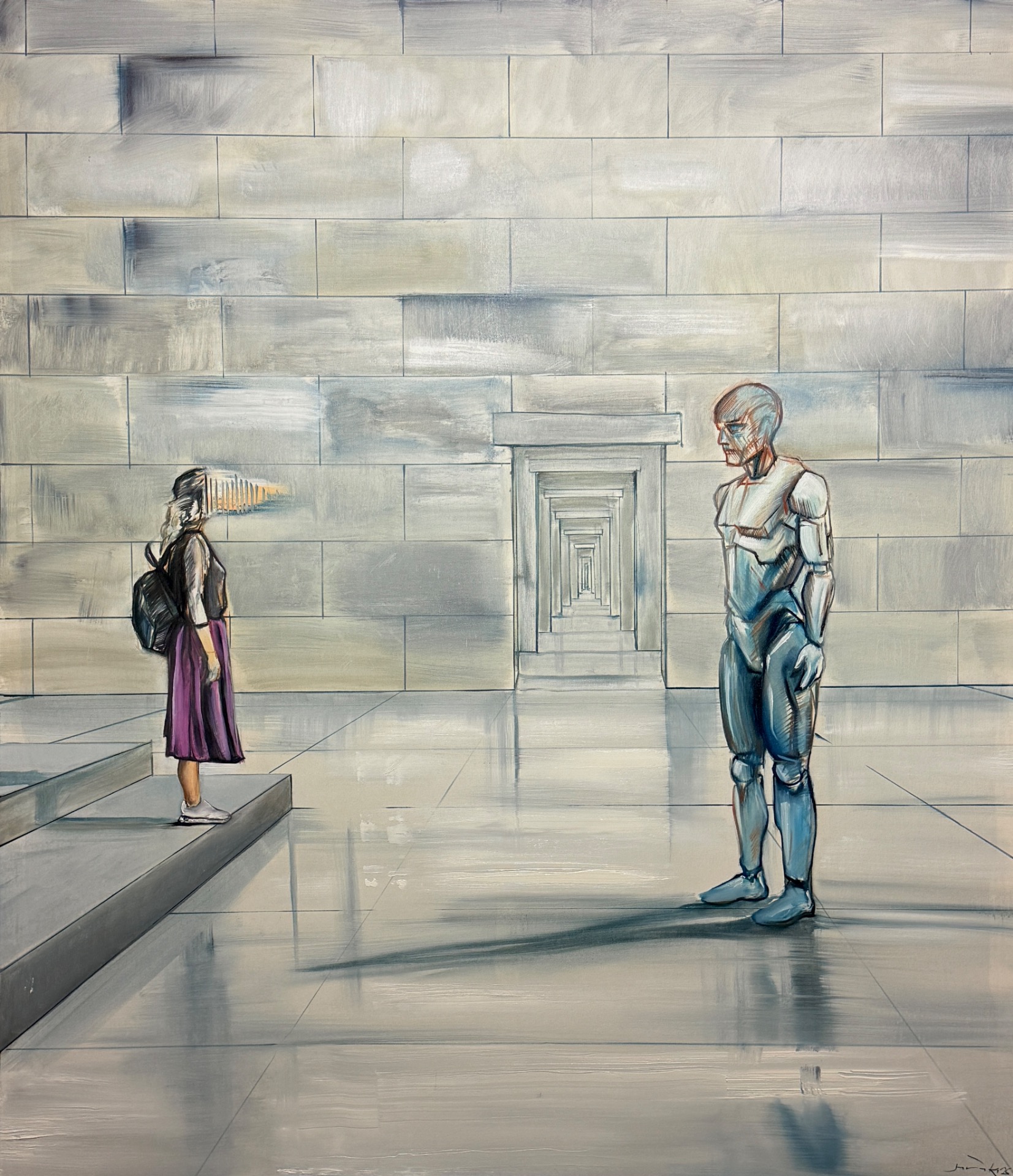 Obrazy z roku 2025 otvárajú pole medzi formou a významom. Portál sa neobjavuje ako objekt, ale ako stav - miesto, kde sa obraz stáva nositeľom existenciálneho napätia a kontemplácie. Maľby fungujú ako liminálne priestory, v ktorých sa krajina, postava a architektúra rozpúšťajú do spoločnej metafyzickej roviny.
